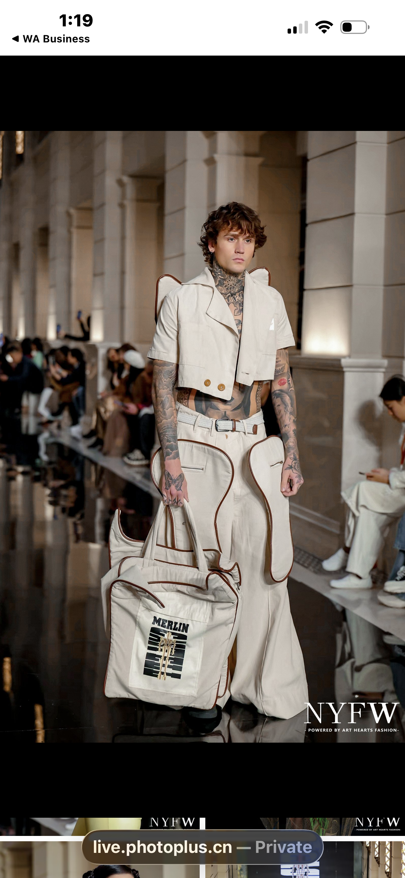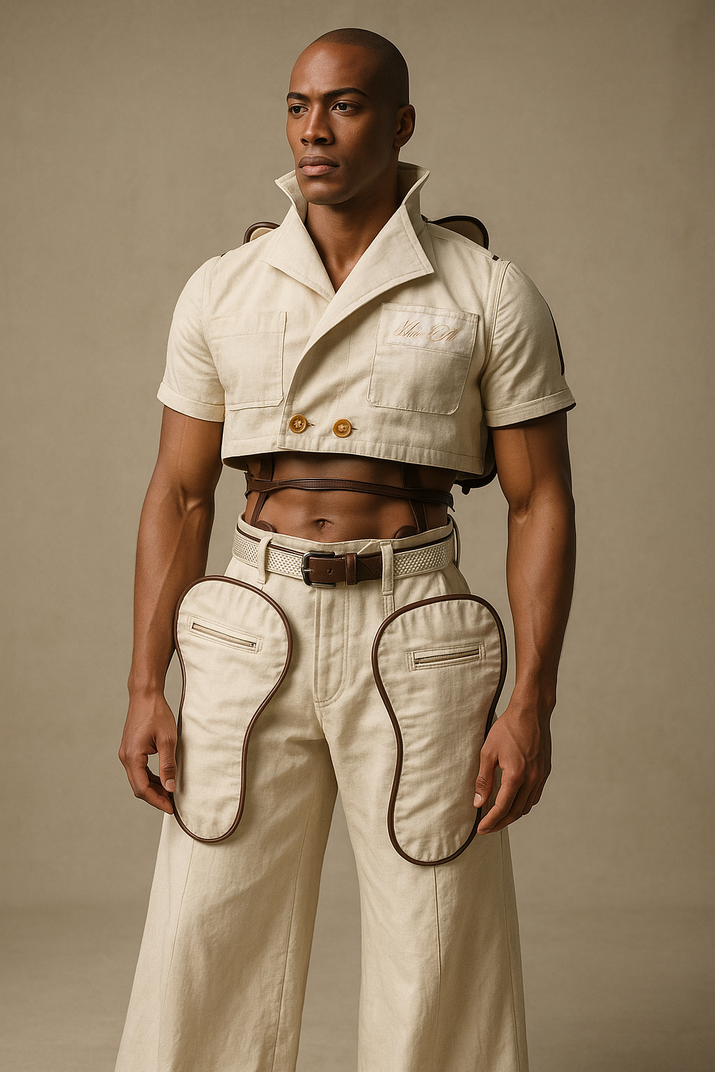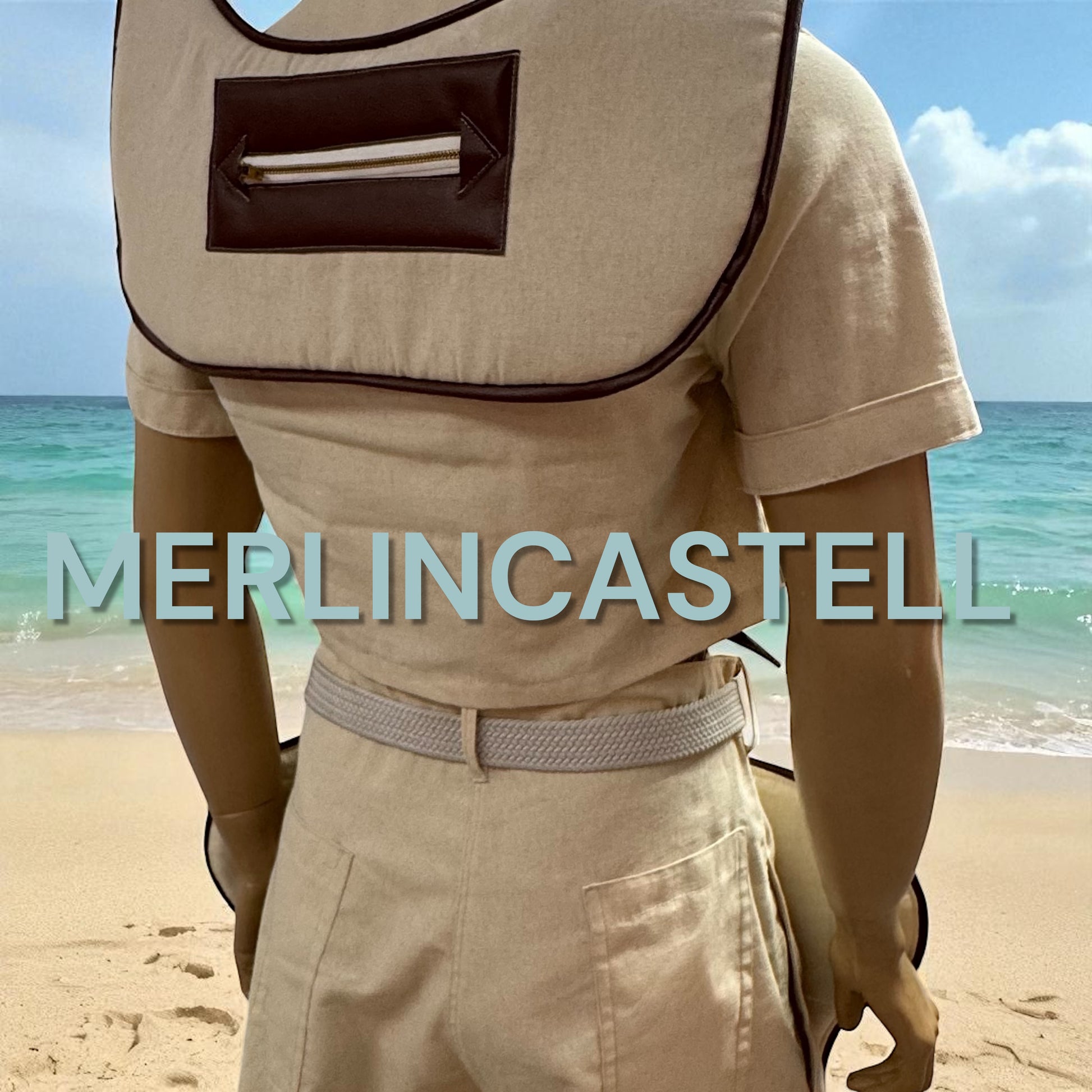 Finished with pattern-cut leather piping embellishments, this look captures the essence of sculptural futurism—soft in texture, strong in silhouette, and unmistakably MERLINCASTELL.