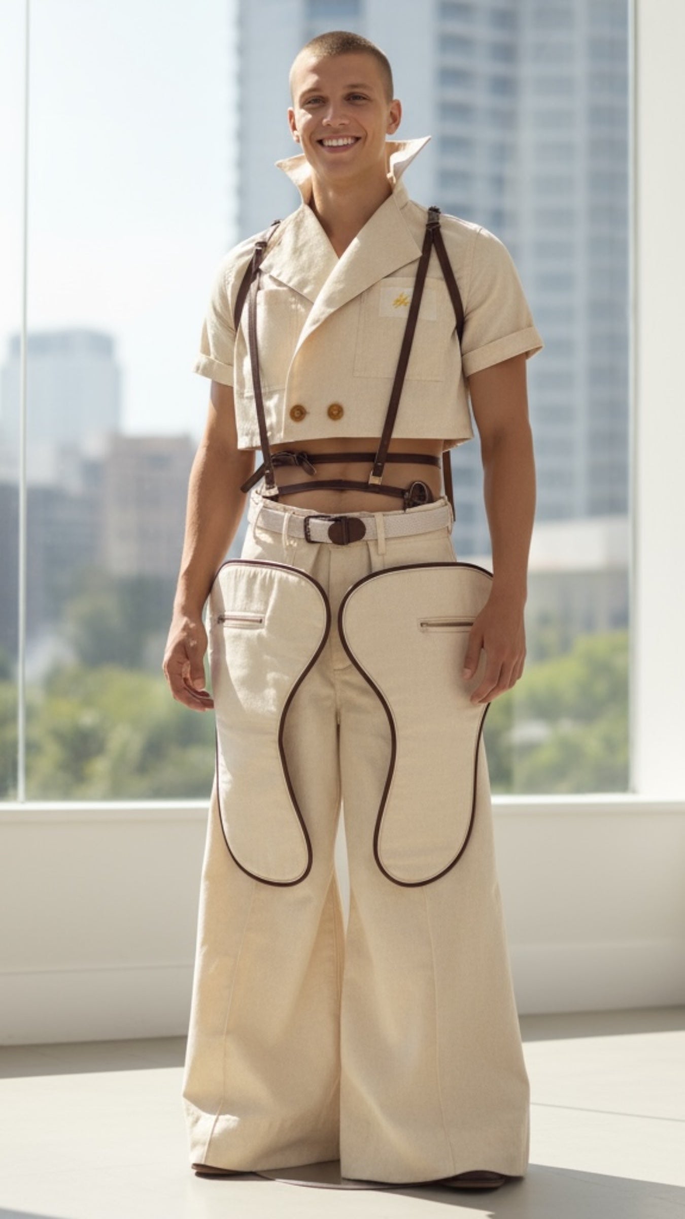 - Oversized Wide-Leg Pants – dramatic volume with sculptural curves