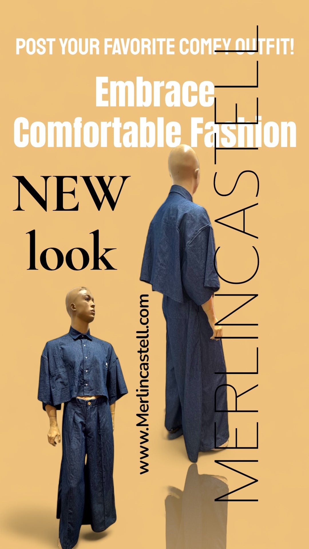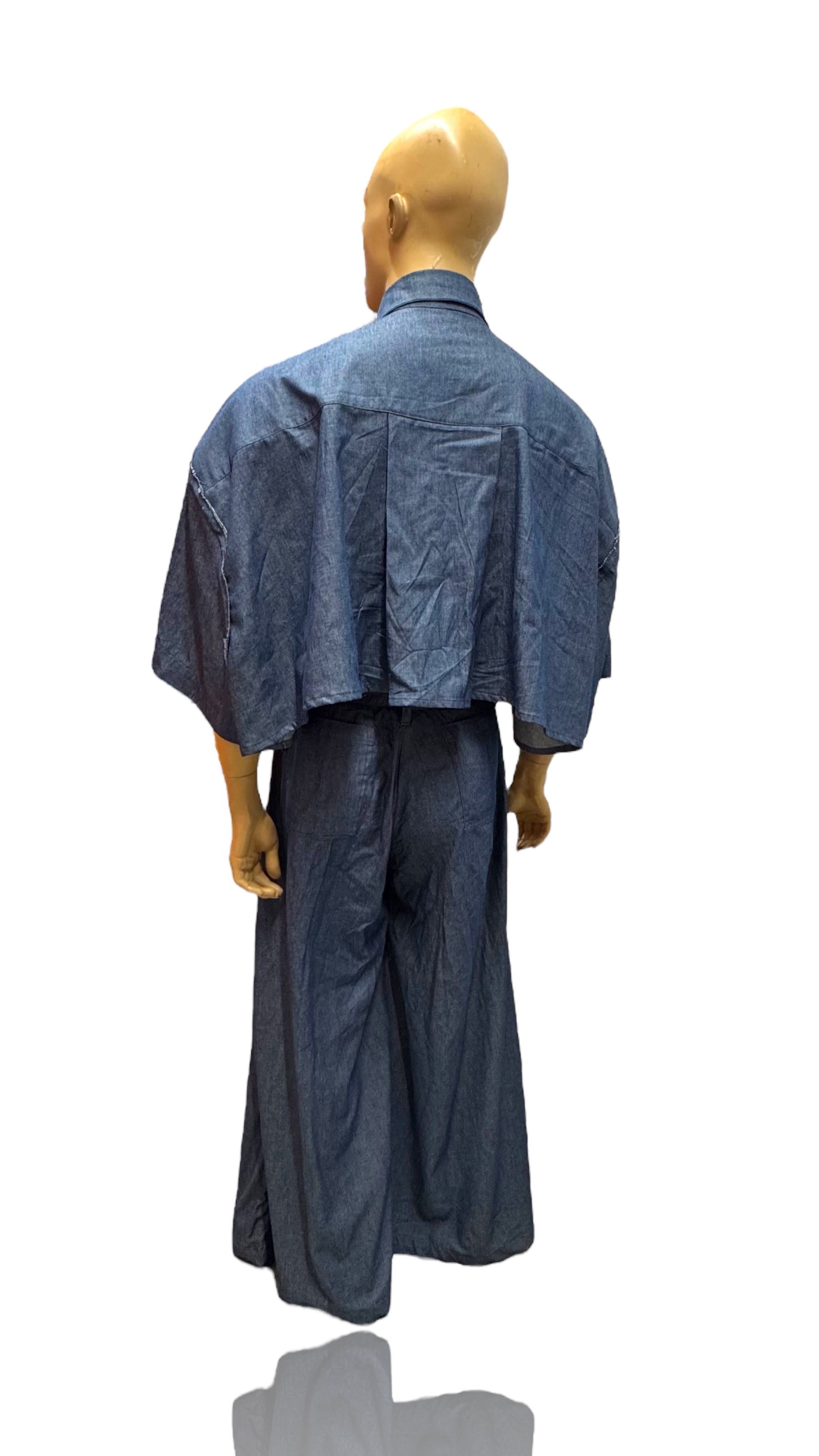 Elevate your everyday style with this avant-garde denim two-piece set, designed for comfort, movement, and bold modern elegance. Crafted from lightweight denim, this look features:
